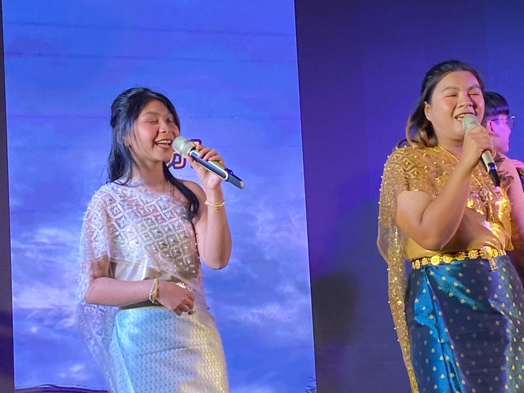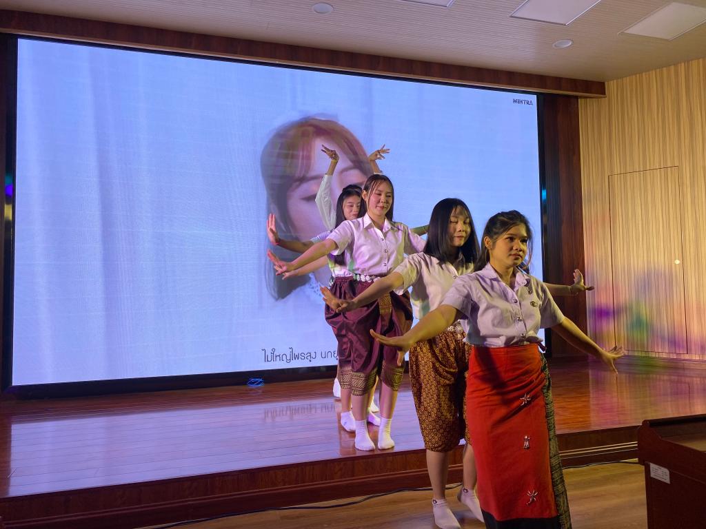 晚会在五位主持人热情洋溢的主持词中拉开序幕。动感的音乐,闪耀的灯光,激情的舞蹈,趣味的游戏,一次次将晚会推向高潮。紧随其后的小游戏“挤气球”,更是调动了大家的热情,同学们纷纷踊跃上台参加游戏。泰国本科学历班以及校际交流班的留学生们表演的中泰民族舞蹈、泰国歌曲和中文歌曲大合唱,让现场的每一个人都感受到表演者们的热情。同时,也让在场的人体会到留学生们对中国语言文化的热忱和那一颗颗留学云南乐学玉师的心。
