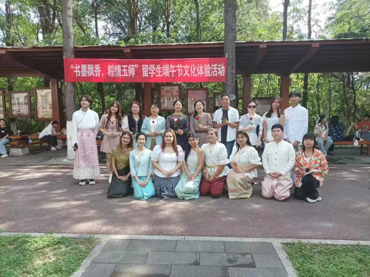 恰逢端午佳节,又迎毕业季节。2024年6月11日下午,国际文化学院2024“书墨飘香﹒粽情玉师”留学生端午节文化体验活动欢乐开展,玉溪师范学院三元楼前呈现出浓浓的节日气氛。
