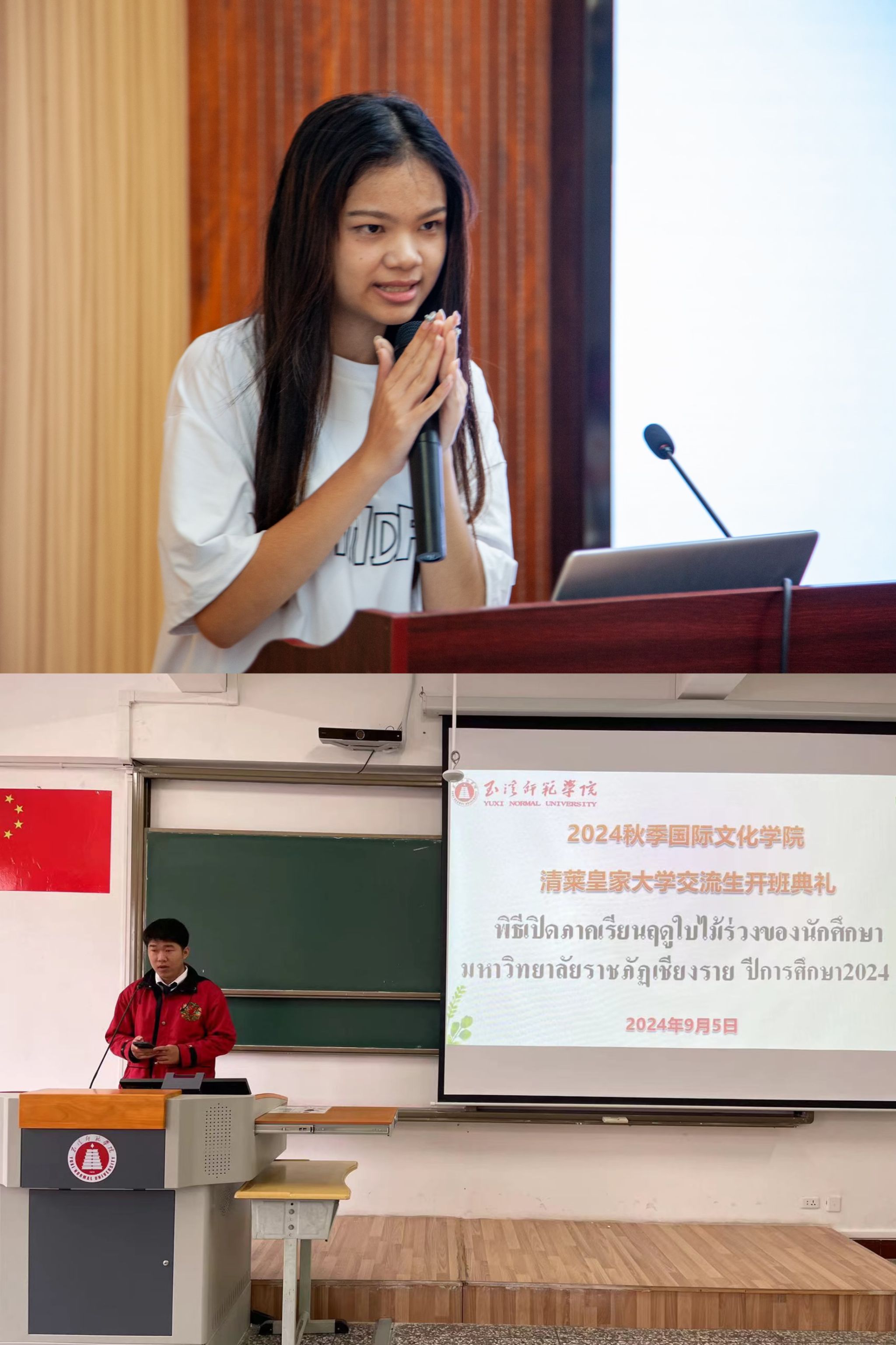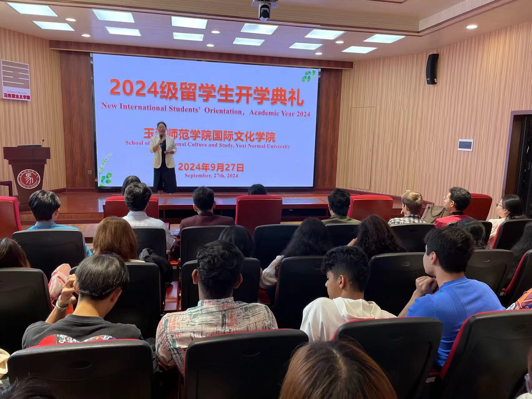 为了让留学生新生们尽快适应新环境,融入玉溪师范学院大家庭。国际文化学院分别举行了两场留学生新生开学典礼。开学典礼上,国际文化学院杨春院长致欢迎辞,向留学生们简要介绍了学校的来华留学工作,用视频片展示了学校美丽的教学环境和留学生培养历程。两名泰国籍本科学历学生参加云南省“云岭杯”大赛的获奖视频极大地激励了留学生们的汉语学习热情。典礼上,留学生代表也做了发言,表达了在玉溪师范学院学习的憧憬,并表示未来将努力学习,按期完成学业。
