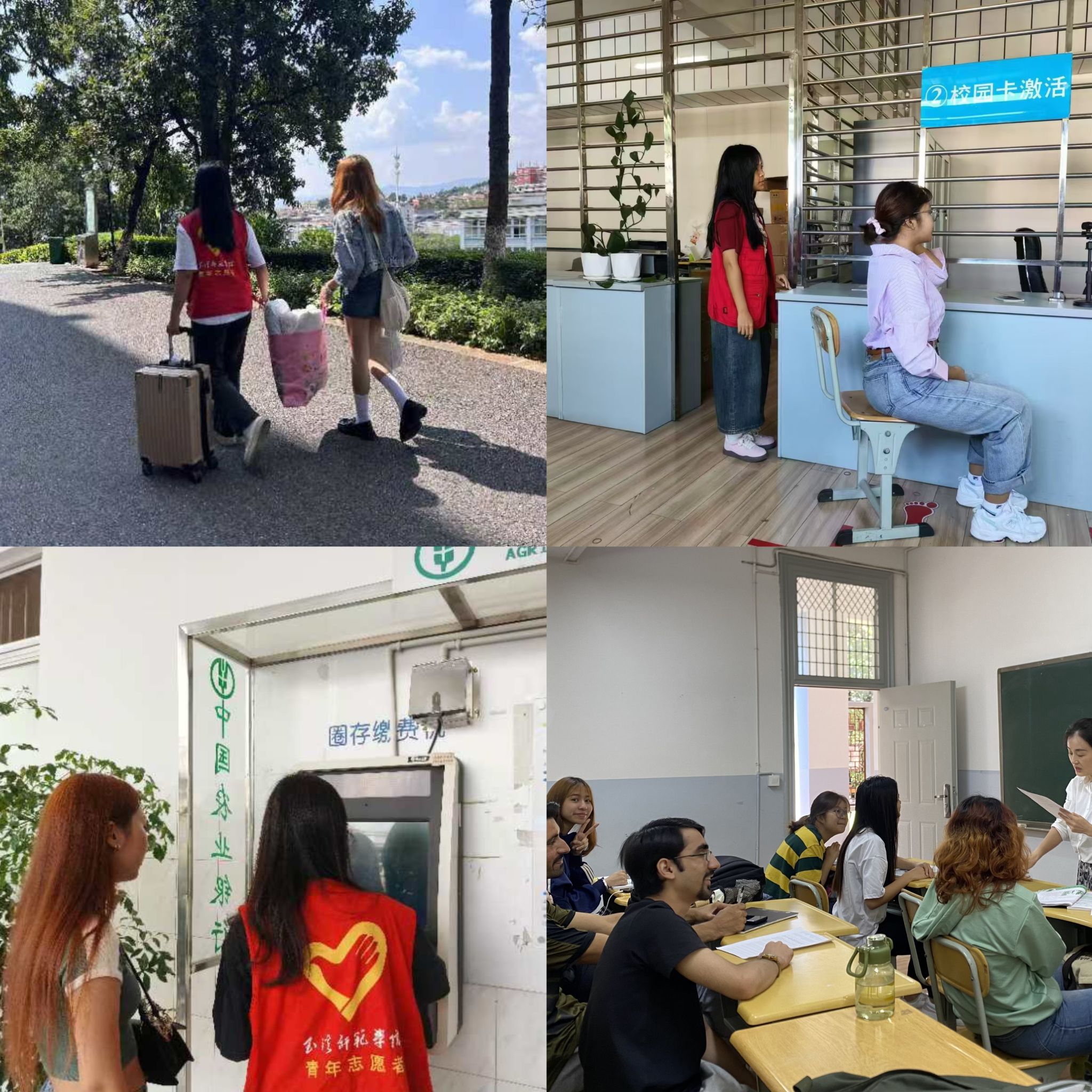 迎新过程中,学校青年志愿者协会也给予了大力支持。志愿者学生在国际文化学院教师的指导下,有条不紊地帮助留学生新生完成报到手续。从路线指引到问题解答,从行李搬运到失物招领,志愿者同学们始终陪伴在新生们身边,毫无懈怠,耐心细致,始终以最真挚的微笑,最贴心的服务与最高涨的热情,为每一位留学生新生送上最好的玉师欢迎词。