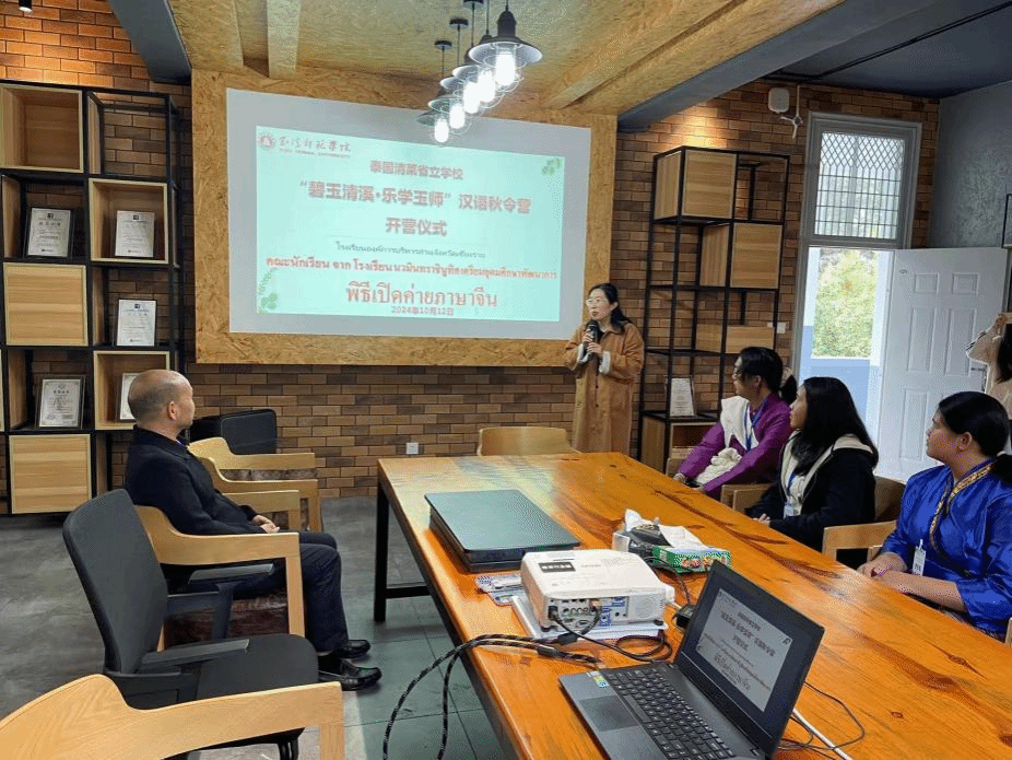 2024年10月12日,金秋送爽之际,泰国清莱省立学校17名师生抵达玉溪师范学院,共赴“乐学玉师·碧玉清溪”汉语营之约。中泰两校师生于三元楼205室齐聚一堂,共同见证2024“碧玉清溪·乐学玉师”汉语秋令营开营仪式。我校为这批远道而来的朋友精心筹备了为期十天的中华文化学习与体验盛宴,旨在深化中泰文化交融,共绘友谊新篇章。