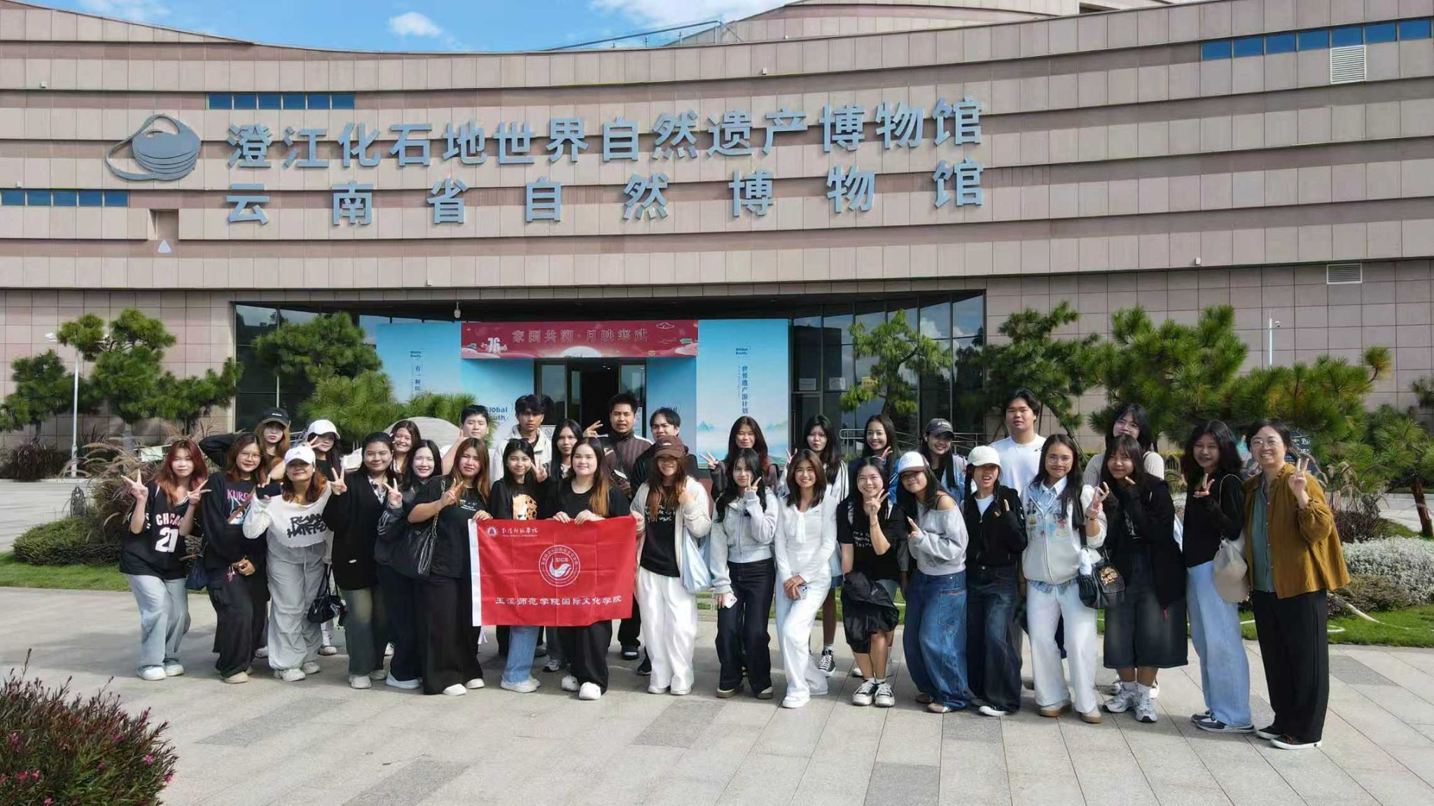 国际文化学院组织留学生到澄江化石地世界自然遗产博物馆开展第二课堂活动,是不断践行“留学云南•乐学玉师的重要实践,更为各国留学生了解玉溪、感知玉溪,向世界推介玉溪的一种有效方式。通过沉浸式体验,泰国、老挝、缅甸学生们不仅直观感知了玉溪深厚的自然文化底蕴,更在互动体验中深化了对汉语言文字的理解与运用。活动中,留学生们主动使用汉语词汇描述所见所感,如“寒武纪”“生物多样性”等专业术语的自然运用,让讲述美丽中国,推广汉语言文字具象化。