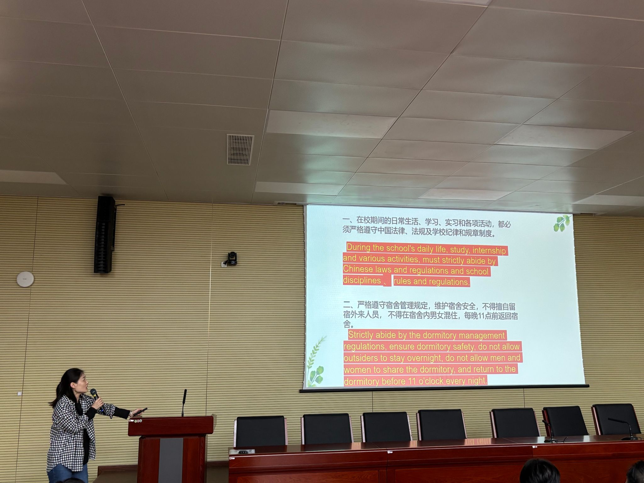 在教学管理环节,教学科吴美华老师就留学生考勤纪律、考试规范、成绩评定等教学管理相关要求进行了说明,希望留同学们抓紧在玉学习时间,顺利完成学业。