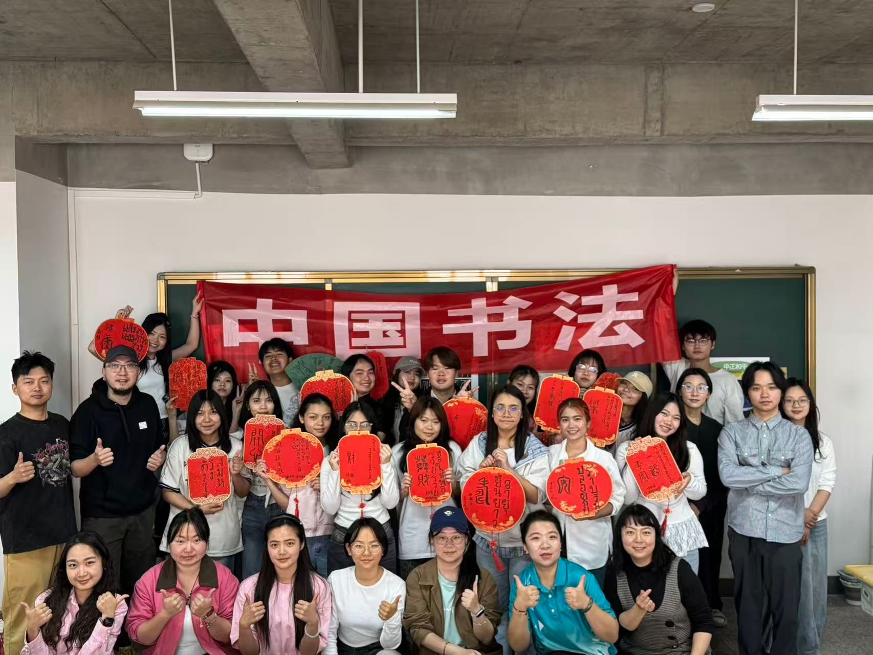 本次活动共创的17幅扇面作品,后续将在泰国艺术大学进行主题为“中泰共创书法作品”的展览,旨在让更多泰国师生通过笔墨,感受中华书法之美与中泰文化交融的魅力。此次文化实践活动,不仅向泰国青年传播了中华书法艺术与哲学思想,也让中国学生从泰国文化中汲取养分,实现了“双向奔赴”的文化互鉴。
